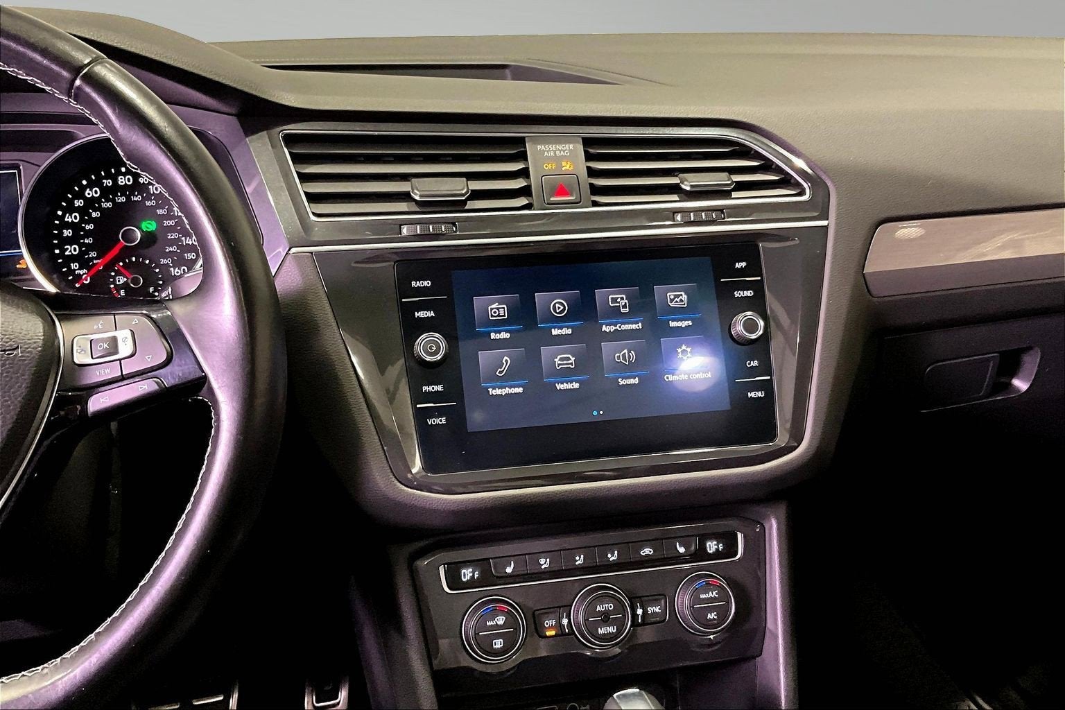 - Radio: Composition Media AM/FM/HD -inc: 8" touchscreen, dual USB input, voice control, 6-speaker sound system, VW App-Connect smartphone integration and interface w/Apple CarPlay, Android Auto and MirrorLink, capability for in-vehicle 4G LTE enabled Wi-Fi (cellular data plan required; includes limited trial), capability for VW Car-Net services (capabilities for certain services vary; requires enrollment or subscription), Bluetooth® connectivity (for compatible devices), SiriusXM satellite radio w/limited-time trial subscription and USB charging-only port facing 2nd row seat