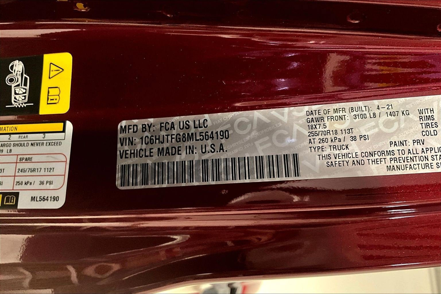 - Spare Tire Size: Full-Size