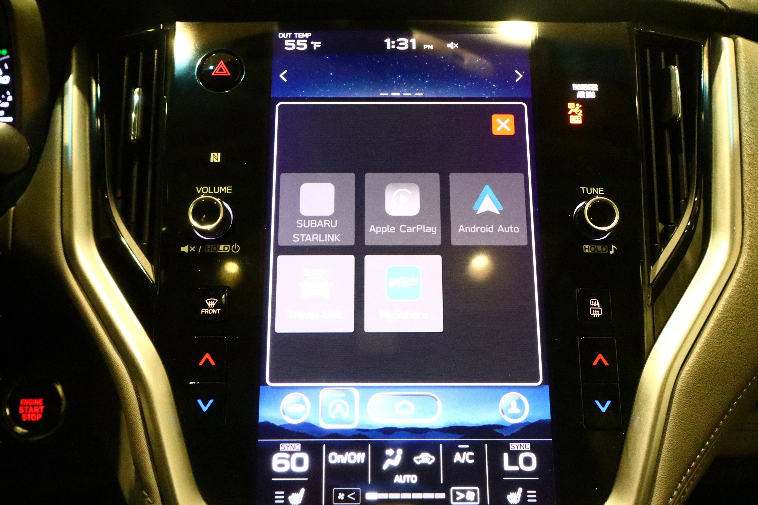 - Radio: Subaru STARLINK 11.6" Multimedia Plus Sys -inc: AM/FM stereo, HD Radio, multi-touch gesture high resolution display screen, voice activated controls, Bluetooth® audio streaming and hands-free phone connectivity w/SMS text messaging, Near Field Communication (NFC), iPod control capability, SiriusXM All Access radio (4 months free trial/subscription required after), SiriusXM Travel Link (4 months free trial/subscription required after), smartphone integration: Android Auto, Apple CarPlay and STARLINK cloud applications, 576 watt harman/kardon surround sound system w/12 speakers, 3.5mm auxiliary input jack and front dual USB input ports