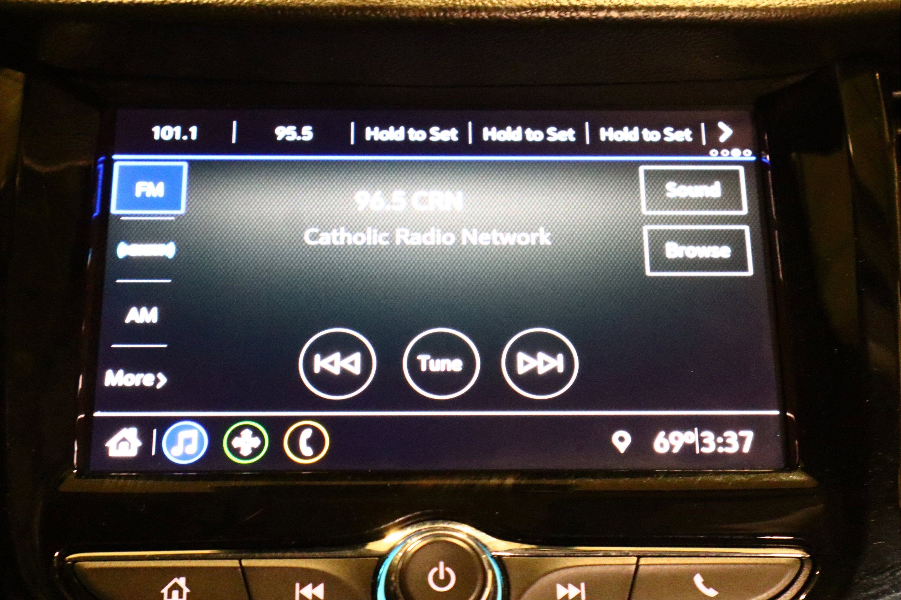 - Audio system, Chevrolet Infotainment System with 7" diagonal color touch-screen, AM/FM stereo voice pass-through technology, includes Bluetooth® streaming audio for music and select phones; featuring Android Auto and Apple CarPlay capability for compatible phone